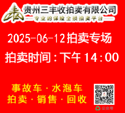 貴州三豐收拍賣有限公司網(wǎng)絡(luò)拍賣于2025年06月11日下午14點(diǎn)00準(zhǔn)時(shí)開(kāi)拍 請(qǐng)需要拍賣車輛的會(huì)員 通過(guò)二維碼繳納拍賣保證金或者致電我司繳納保證金 0851-86711666 18275321810 13378515056 18268322089 人工審核
